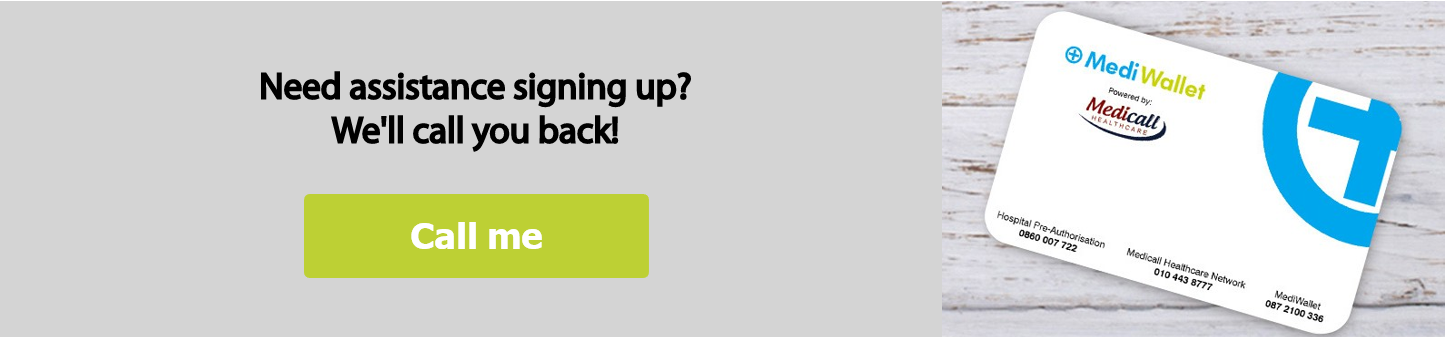 This is not a medical scheme and the cover is not the same as that of a medical scheme. The policies are not a substitute for medical scheme membership. Maximum age of 64. Changes between the plans are allowed annually on the 1st of January, with notice of change to Medicall Healthcare confirmed no later than the 30th of November the preceding year. Waiting periods apply. MediWallet Insurance Plans are powered by Medicall Healthcare which is a product of Xperia Financial Services (Pty) Ltd, a Licensed Financial Services Provider (FSP 45551), registered with FSCA (Financial Sector Conduct Authority) and CMS (Counsel of Medical Schemes) demarcation exemption (DM1051). Stated Hospital Benefits are underwritten by Lion of Africa Life Assurance Company Ltd, a licensed life insurer in terms of the Insurance Act (FSP 15283). MediWallet is operated by FeverTree Finance (Pty) Ltd, an Authorised Financial Services (FSP 44281) and Registered Credit Provider (NCRCP 19967).